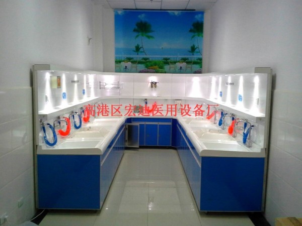 1、臺面和清洗槽采用防泛水設計,濺到臺面的液體會全部流入下水道。2、臺面前端采用大圓弧造型設計,為內(nèi)鏡洗消人員提供腰腹部的