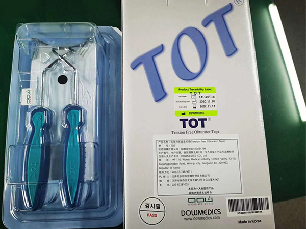 TOT由兩個(gè)螺旋狀手柄和一個(gè)帶有透明保護(hù)膜的無菌網(wǎng)帶構(gòu)成,螺旋狀設(shè)計(jì)的針形裝置可以安全精確地透過閉孔到達(dá)陰道切口。不可吸收的無菌網(wǎng)帶是由聚丙烯聚合物編織而成。長(zhǎng)度約(11mm*450mm)的有韌性的聚丙烯吊帶的中間部分有透明保護(hù)膜,在手術(shù)中需把兩個(gè)不銹鋼針分別和吊帶的連接口連接在一起。吊帶的構(gòu)成與聚丙烯手術(shù)縫合線一樣不緊繃。