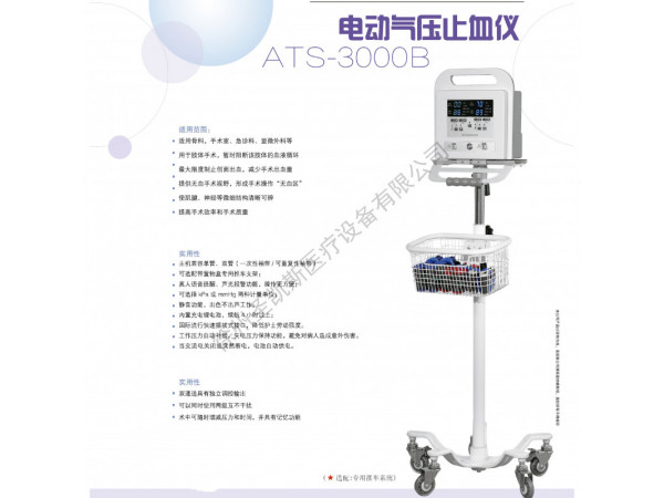 電動(dòng)氣壓止血儀由主機(jī)、止血帶及承放主機(jī)的推車組成,其中ATS-1000型、ATS-2000型含推車,ATS-3000型不含推車。安全性能應(yīng)符合GB