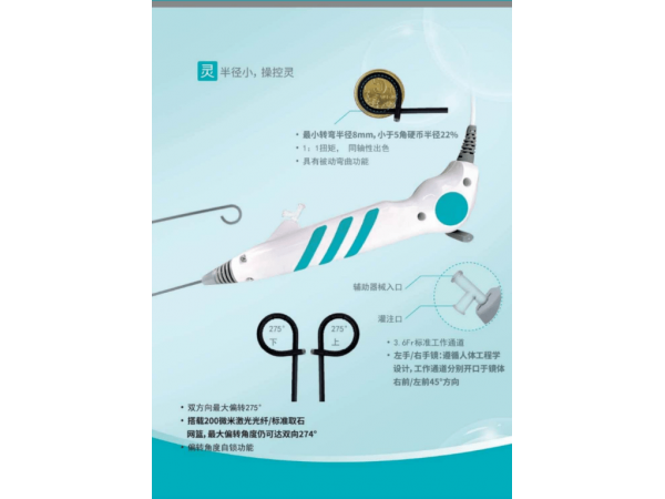 靈活纖細(xì) 高效清石清晰視野:先端雙LED光源,120“大視野,清晰成像靈活彎曲:上下275°大角度彎曲,在處理小IPA腎下盞結(jié)石更具優(yōu)