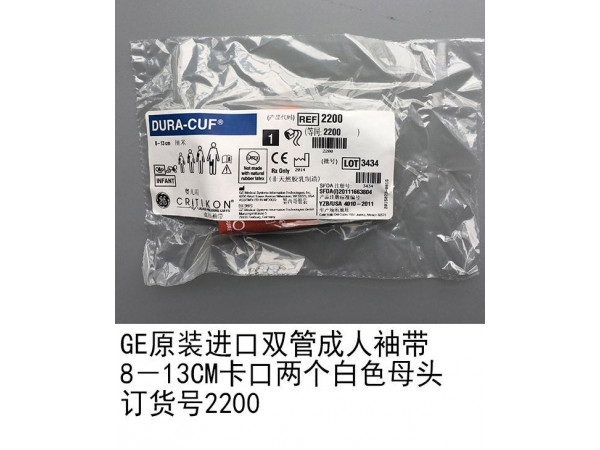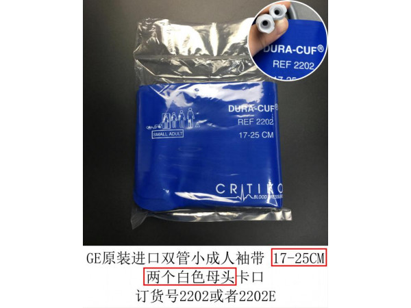 GE原裝進(jìn)口雙管小成人袖帶17-25CM卡口兩個白色母頭訂貨號2202GE監(jiān)護(hù)儀型號:B20/30/40/105/125/450/650/850,DASH3000/4000/5000
