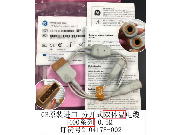 GE原裝進(jìn)口分開式雙體溫纜線0.5m機(jī)器端方形11針 訂貨號2104178-002 原訂貨號2016998-001或2104178-002GE監(jiān)護(hù)儀型號:B20/30/40/1