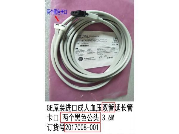 GE原裝進(jìn)口成人血壓雙管延長管卡口兩個黑色公頭3.6M訂貨號2017008-001GE監(jiān)護(hù)儀型號:B20/30/40/105/125/450/650/850,DASH3000/4