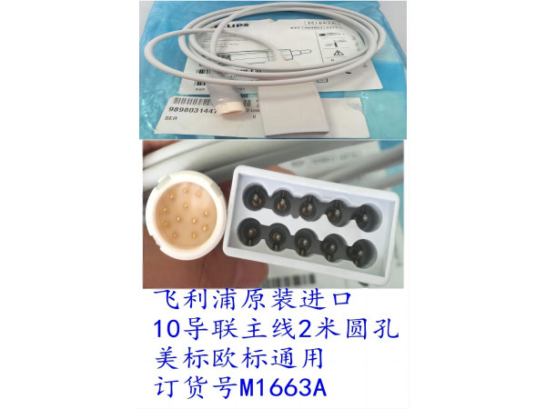 飛利浦原裝進(jìn)口10導(dǎo)聯(lián)主線2米圓孔雙排 美標(biāo)歐標(biāo)通用訂貨號M1663A飛利浦所有監(jiān)護(hù)儀如型號:X2,MP2,MP5,MP20,MP30,MP40,MP50,M