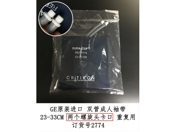 GE原裝進(jìn)口雙管成人袖帶 23-33CM 重復(fù)用 兩個螺旋頭卡口 訂貨號2774GE監(jiān)護(hù)儀型號:B20/30/40/105/125/450/650/850,DASH3000/40