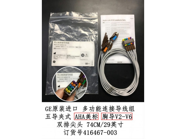 GE原裝進(jìn)口 多功能連接導(dǎo)線組 五導(dǎo)夾式 AHA美標(biāo) 74CM/29英寸 胸導(dǎo) V2V3V4V5V6 雙排尖頭 訂貨號416467-003GE監(jiān)護(hù)儀:B20/30/40/10