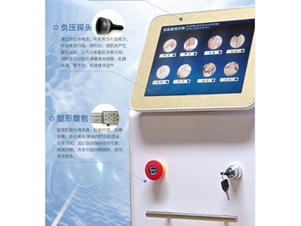 治療特點(diǎn):爆脂、燃脂、擠壓,同時(shí)施治!非凡效果立桿見影,馬上可以測量尺寸減重、減尺寸、塑形同時(shí)進(jìn)行,效果完美無膚色要求,適用面更廣術(shù)中治療舒適,無痛、無創(chuàng)傷無需準(zhǔn)備治療階段,治療后無需恢復(fù)期,NO DOWN TIME 操作簡單,易學(xué)易用。系統(tǒng)特點(diǎn)一:超聲爆脂功能簡介 超聲和RF可以單獨(dú)使用,一機(jī)多能!真正實(shí)現(xiàn)功能多樣化! 二:三燃脂功能簡介 優(yōu)選進(jìn)口射頻發(fā)生器,高能量、準(zhǔn)確施治!連續(xù)、脈沖式輸出、自由可調(diào),治療更加靈活! 專家系統(tǒng)開機(jī)器指導(dǎo),操作簡單、易學(xué)易用無極治療頭感應(yīng)式設(shè)計(jì),確保準(zhǔn)確施治三:負(fù)壓揉脂簡介 優(yōu)選日本進(jìn)口負(fù)壓泵,吸力強(qiáng)大,頻率穩(wěn)定,工作時(shí)間長!負(fù)壓和RF可以單獨(dú)使用,一機(jī)多能!真正實(shí)現(xiàn)功能多樣化! 時(shí)鐘控制,治療準(zhǔn)確患者遙控操作,人機(jī)交流方便,避免客戶損傷! 系統(tǒng)功能 預(yù)留技術(shù)接口,系統(tǒng)自如升級電源模塊化設(shè)計(jì),適合進(jìn)出口,維修方便可聯(lián)機(jī)實(shí)現(xiàn)3種手具即插即用,功能強(qiáng)大!系統(tǒng)CPU密碼可控技術(shù),自由實(shí)現(xiàn)使用壽命、方便租賃合作銷售! 8.4寸真彩顯示屏幕,8.4英寸寬屏觸摸設(shè)計(jì),人機(jī)交流更便捷,更準(zhǔn)確!歐盟CE認(rèn)證,權(quán)威保障 優(yōu)質(zhì)航空包裝,確保運(yùn)輸可靠無損傷機(jī)器多種外形供客戶選擇OEM!適用癥:消除多余脂肪、減肥美體瘦身?收緊手臂、小腿、大腿、臀部、腰背部、腹部肌肉,重塑身形針對不同程度桔皮脂肪組織給予有效治療舒緩減壓鎮(zhèn)痛(例如關(guān)節(jié)痛、坐骨神經(jīng)痛),對皮膚組織進(jìn)行有規(guī)律的機(jī)械有氧運(yùn)動(dòng),迅速緩解壓力,消除疲勞。緊致肌膚,增強(qiáng)皮膚彈性,改善毛孔粗大,嫩白肌膚。激活膠原質(zhì),增進(jìn)皮膚新陳代謝,深層且高強(qiáng)的淋巴引流將身體組織中的代謝廢物排除,達(dá)到全身淋巴排毒