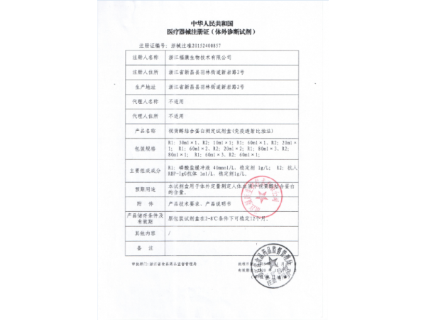 本試劑用于體外定量測定人體血清中視黃醇結(jié)合蛋白的含量。[適用儀器]適用于日立7180型、奧林帕斯AU400型、貝克曼DX800型、雅培C1
