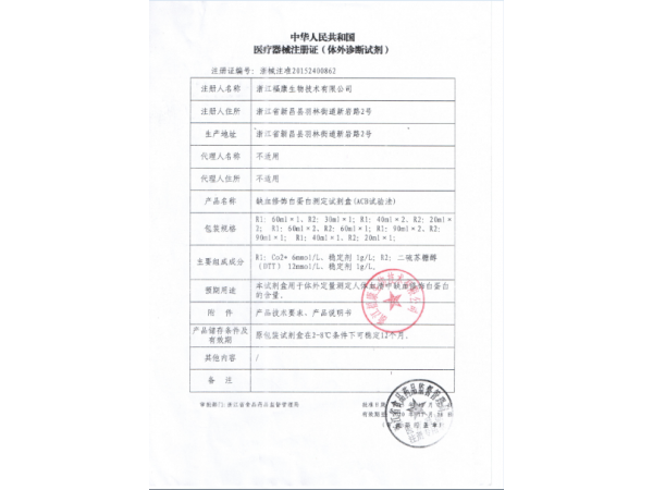 一、產(chǎn)品名稱:總蛋白測定試劑盒二、英文簡稱:TP三、檢測方法:雙縮脲法四、生產(chǎn)企業(yè):浙江愛康生物科技有限公司五、批準文號:浙食藥監(jiān)械(準)字2012第2400093號六、臨床意義:用于體外定量測定人血清中總蛋白的濃度,可輔助診急性失水、水潴留、肝功能障礙、營養(yǎng)不良等疾病。七、常用規(guī)格:R:60×2 R:80×2 R:80×2八、產(chǎn)品包裝:①7060包裝:適用于日立7060/7150,島津CL7200/7300/8000,雅培AEROSET,東芝120FR等全自動生化分析儀。②7180包裝:適用于日立7080/7170/7180/7600,奧林帕斯AU400/480/600/640/1000/2700/5400,拜耳1650/2400,羅氏P800,迪瑞cs-300/600/800等全自動生化分析儀。③貝克曼包裝:適用于貝克曼CX、LX、DX系列全自動生化分析儀④其他包裝類型:另有日立7020包裝,杜邦系列包裝,邁瑞200、300系列包裝等。九、備注①更多、更詳細資料見浙江愛康生物科技有限公司網(wǎng)站。②準確信息歡迎來電咨詢。