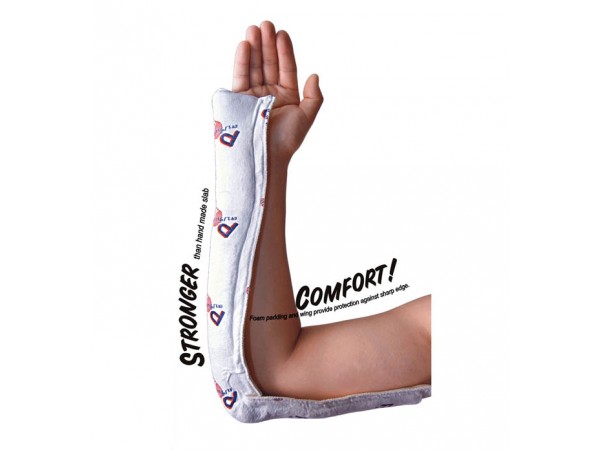 產(chǎn)品特點:1、更輕便:采用進口輕質(zhì)聚酯棉,網(wǎng)狀編織結(jié)構(gòu),重量減輕30%-40%。2、更易塑形:材質(zhì)良好的延展性,能在關(guān)節(jié)等不規(guī)則部位緊密貼合肢體,且無折皺,避免了塑形過程中復(fù)位丟失或復(fù)位后的再次錯位。3、更透氣:多孔網(wǎng)狀結(jié)構(gòu)設(shè)計,產(chǎn)品更加透氣,讓皮膚自由呼吸。4、更透X線:常規(guī)攝片影像更清晰,且攝片管電壓低,時間短,減少輻射。5、更環(huán)保:廢棄物可完全燃燒,避免環(huán)境污染。6、更易拆除:研發(fā)繃帶專用拆開器,噪音小、重量輕、拆除容易,無潛在危險。使用方法◆根據(jù)不同部位選擇相應(yīng)規(guī)格,不需醫(yī)生戴手套?!舸蜷_包裝后,在常溫水(21-24℃)中浸泡4-6秒并擠壓2-3次,使外側(cè)襯布均勻充分的吸收水分?!魯D出或用干毛巾去除多余水分?!魧A板的內(nèi)側(cè)襯布面貼緊需固定的部位,用紗布繃帶或彈性繃帶纏繞,根據(jù)需要塑形。◆3分鐘后開始固化,30分鐘后可達到有功能的強度。