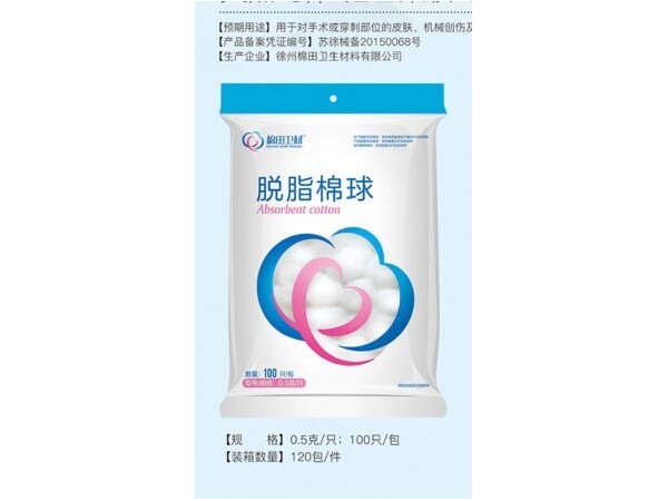 脫脂棉球 【產(chǎn)品名稱】脫脂棉球【型號(hào)規(guī)格】0.25g/?!井a(chǎn)品描述】皮膚、創(chuàng)面消毒處理時(shí),涂抹藥物或消毒劑的工具。不含藥物或消毒劑?!绢A(yù)期用途】用于對(duì)手術(shù)或穿刺部位的皮膚、機(jī)械創(chuàng)傷及器械的局部涂抹消毒劑?!緝?chǔ)存條件、方法】密封,置陰涼處。【有效期限】四年【產(chǎn)品備案號(hào)】魯寧械備20150025號(hào)【企業(yè)生產(chǎn)備案憑證編號(hào)】魯寧食藥監(jiān)械生產(chǎn)備20150008號(hào) 【企業(yè)名稱】山東九爾實(shí)業(yè)集團(tuán)有限公司 【注冊(cè)地址】山東省濟(jì)寧市高新區(qū)第十二工業(yè)園