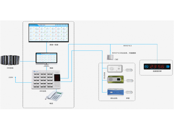 病房呼叫系統(tǒng)由安裝在病區(qū)護(hù)士站的呼叫主機(jī)和分別設(shè)置在病房床頭、病房衛(wèi)生間的呼叫分機(jī)、走廊顯示屏組成,一旦病房床頭或衛(wèi)生間