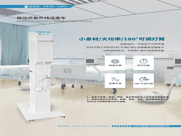 1、帶360度車輪,便于移動2、開啟時語音提示,提醒人員離開現(xiàn)場,確保安全使用3、自動延時60秒開啟,可確保人員先離開現(xiàn)場,紫外線殺菌燈才開始工作,以避免照傷人體4、可將燈管折疊,方便存儲5、定時功能,消毒車在規(guī)定時間內自動停止工作,消毒時間自由設定6、功率可擴展,備有兩支30W燈管接口