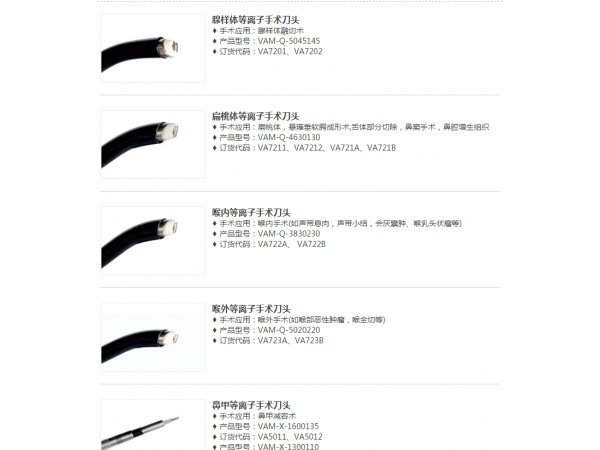 公司批發(fā)銷(xiāo)售:射頻等離子手術(shù)電極椎間孔鏡手術(shù)刀頭、經(jīng)皮穿刺等離子刀頭、耳鼻喉等離子手術(shù)系統(tǒng)、耳鼻喉等離子手術(shù)刀頭(扁桃體