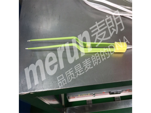 雙極電凝鑷的兩個(gè)尖端為組織提供高頻電能,使雙極鑷子兩端之間的血管脫水而凝固,達(dá)到止血的目的。由于它的作用范圍只限于鑷子兩