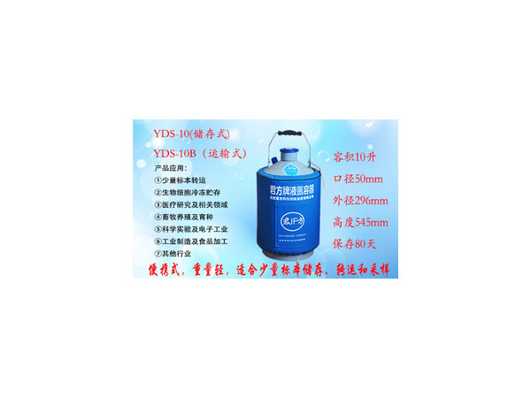 YDS-10(便攜式)貯存式液氮罐帶有提手,攜帶方便。是由高強(qiáng)度防銹鋁合金制造,采用先進(jìn)的設(shè)計(jì)理念和真空絕熱措施,使其達(dá)到理想