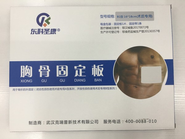 東科圣康品牌--胸骨固定板系列產(chǎn)品是由高分子納米板、鋁合金板、粘合層、專用固定帶等手工制作而成,具有結(jié)構(gòu)新穎、重量輕、剛性
