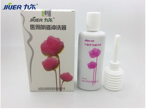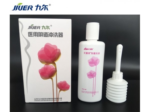 醫(yī)用陰道沖洗器(九爾宜潔)【主要結(jié)構(gòu)】A.SAP-Ⅰ型由醫(yī)用聚乙烯容器和醫(yī)用聚乙烯陰道沖洗器及抗菌洗液組成;【產(chǎn)品特點(diǎn)】醫(yī)用陰道沖洗器使用方便不刮傷人體;抗菌洗液中的抗菌主劑A.SAP是一種天然有機(jī)抗菌劑,純植物萃取液,對(duì)皮膚及陰道黏膜具有抗菌修復(fù)作用。對(duì)人體無(wú)刺激??咕Ч麡O好,對(duì)白色念珠菌等抑菌率可接近100%,可迅速殺滅細(xì)菌繁殖體、芽孢、真菌、霉菌及病毒等。 【適用范圍】本品主要用于各種陰道炎、宮頸炎、宮頸糜爛及日常預(yù)防和消毒護(hù)理所需的陰道沖洗、會(huì)陰清潔消毒等。【使用方法】 1.陰道沖洗:取原液40-50ml(沖洗器容量為50ml)直接灌入沖洗器,然后裝上沖洗頭即可使用。 2.使用時(shí)將沖洗頭輕輕插入陰道深處,擠出全部藥液2-3分鐘,在捏住的狀態(tài)下,緩緩從陰道抽出沖洗器。 3.外陰清潔:取本品適量后直接沖洗或濕敷。 每天沖洗1-2次