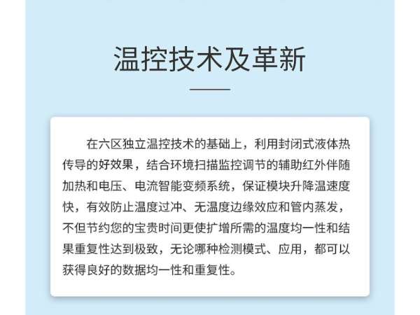 溫控系統(tǒng)熱蓋溫度:室溫~110℃恒壓力熱蓋恒壓力熱蓋:兼容不同高度的耗材模塊溫度:0°C~100°C模塊控溫原理:Peltier效應(yīng),半