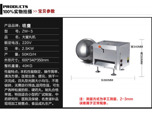 高產(chǎn)量制丸機(jī)特點:1、適用于診所、藥店、中醫(yī)院藥房、大專院校和制藥廠實驗室使用。2、自動機(jī)械壓餅、出條、搓丸、滾圓,丸型光