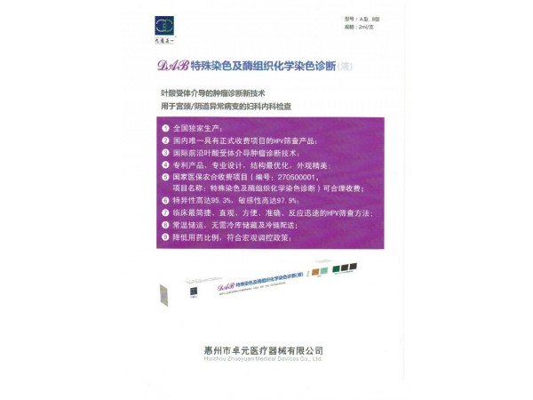 1、全國獨家生產(chǎn);2、國內(nèi)唯一具有正式收費項目的HPV篩查產(chǎn)品;3、國際前沿葉酸受體介導(dǎo)腫瘤診斷技術(shù);4、專利產(chǎn)品,專業(yè)設(shè)計,