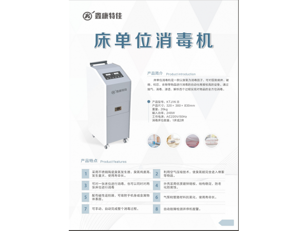 床單位臭氧消毒機(jī)采用高濃度臭氧發(fā)生裝置及氣泵增壓技術(shù),將高濃度臭氧以半封閉增壓滲透方式輸入包裹于專用床罩里的被褥、枕芯、床墊中,達(dá)到為床單位消毒的目的,將致病菌微生物殺滅于“溫床”之中。