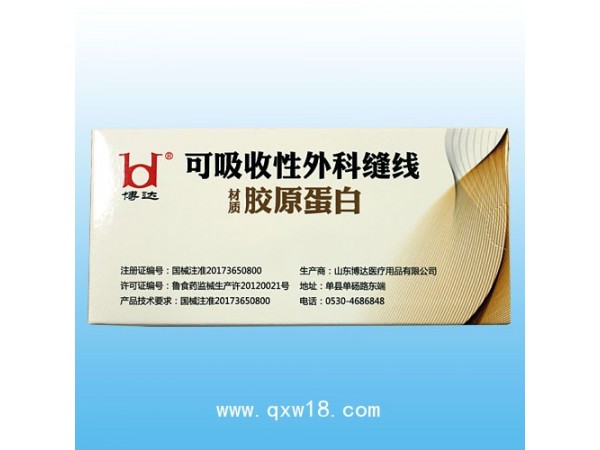 博達(dá) 可吸收縫線膠原蛋白可吸收性外科縫線(膠原蛋白縫合線)產(chǎn)品說明:產(chǎn)品名稱:可吸收性外科縫線(膠原蛋白線)主要成份:膠原蛋白