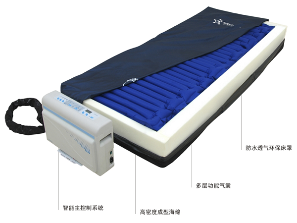 波動型的噴氣氣墊不僅能有效地防治褥瘡,其和緩的波動猶如對患者輕柔的按摩,可促進(jìn)臥床者的血液循環(huán)。 防止褥瘡的床 護(hù)理床墊防