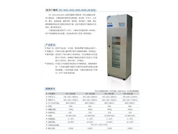 產品名稱:醫(yī)用干燥柜產品型號:DK-300L/400L/500L/600L(標準款)產品簡介:醫(yī)用干燥柜是一種大容量綜合醫(yī)用干燥設備,主要能滿