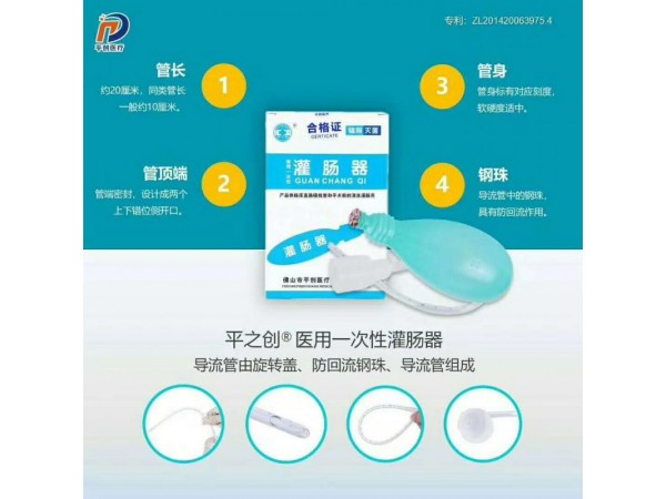 [產(chǎn)品概述] 灌腸器由球囊(貯液罐)、沖洗頭、導管及吸水棉墊等組成。洗滌液采用肥皂水或18226;28226;3丙三醇(醫(yī)用甘油)等組成; 球囊(貯液罐)采用橡膠或聚丙烯等材料制成;導管采用聚乙烯等材料制成;沖洗頭采用ABS或聚丙烯等材料制成。[適用范圍]灌腸器主要供患者在各種手術前的清潔灌腸、手術后的灌腸及便秘灌腸時用。[性能特點] 灌腸器由球囊(貯液罐)、沖洗頭、導管及吸水棉墊等組成。它具有使用方便、衛(wèi)生、操作簡單,無污染、無交叉感染等優(yōu)點。[使用方法] 將灌腸器的小包裝拆除(拆除后應確認灌腸器是否已被污染),將灌腸器的貯液罐蓋打開,口朝上放置在合適的位置,裝入灌腸液,將貯液罐蓋擰緊,擰上沖洗頭導管,將沖洗頭插入肛門內(nèi)(成人6-10cm,小兒3-7cm)至沖洗部位,輕輕、反復擠壓球囊(貯液罐),使灌腸液慢慢注入直腸內(nèi),沖洗腸道,然后上推棉墊,拔出導管,壓住肛門口,5-15分鐘即可排便。灌腸器,本產(chǎn)品人性化設計,使各種便秘灌腸和術前在單獨,輕松的操作中一次性完成。它安全、高效、衛(wèi)生、便捷、舒適。實為各種便秘患者及術前灌腸之佳首。