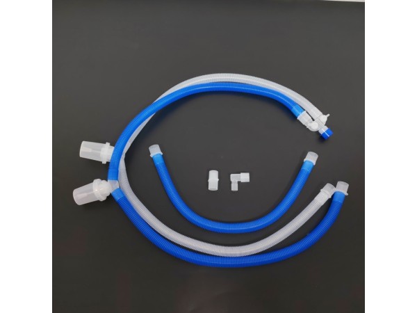 結(jié)構(gòu)組成:一次性使用麻醉機(jī)和呼吸機(jī)用呼吸管路套組包括單管路型和雙管路型,由波紋管、接頭(直 型、Y 型、L 型、T 型)、轉(zhuǎn)換