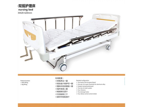 外形尺寸:2000*900*500-550翻身,起背曲腿,防側(cè)滑,防下滑,洗頭,便盆ABS床頭床尾,四擋半不銹鋼護(hù)欄,搖桿系統(tǒng)4套,輸液桿,