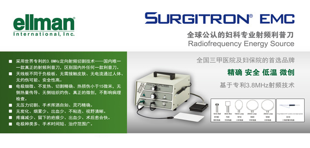 美國(guó)愛(ài)爾曼Ellman EMC型高頻射頻電波刀主機(jī)系統(tǒng)是 全球公認(rèn)的婦科、整形外科、皮膚科專(zhuān)業(yè)射頻LEEP刀,它不僅適用于能想到的任何手術(shù),而且以其在手術(shù)中無(wú)可比擬的精細(xì)微創(chuàng),使手術(shù)安全性達(dá)到一個(gè)全新的 高度。它采用世界專(zhuān)利的3.8MHz定向射頻切割技術(shù),無(wú)需接觸皮膚、無(wú)電流通過(guò)人體、無(wú)灼傷可能;對(duì)組織的損傷最小、安全性最高、用途最廣、性?xún)r(jià)比最好。