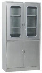 上部鑲嵌玻璃門(mén),下部為雙門(mén),分隔明確,便于器械分類(lèi)儲(chǔ)存;