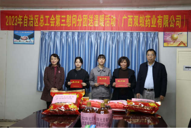 自治區(qū)總工會副主席、黨組成員鐘天錄率自治區(qū)總工會第三慰問分團(tuán)到雙蟻藥業(yè)開展送溫暖活動