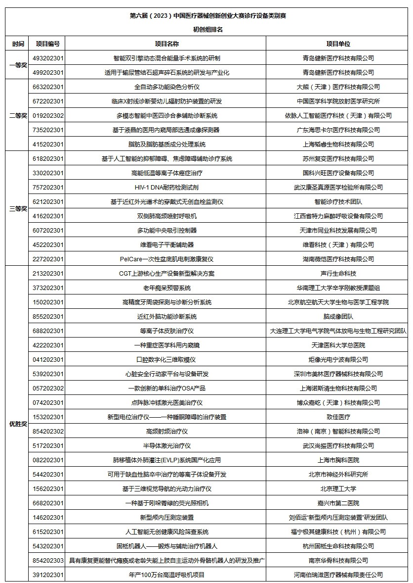 診療設(shè)備類別賽初創(chuàng)組最終評選出一等獎2個,二等獎5個,三等獎8個,優(yōu)勝獎21個。