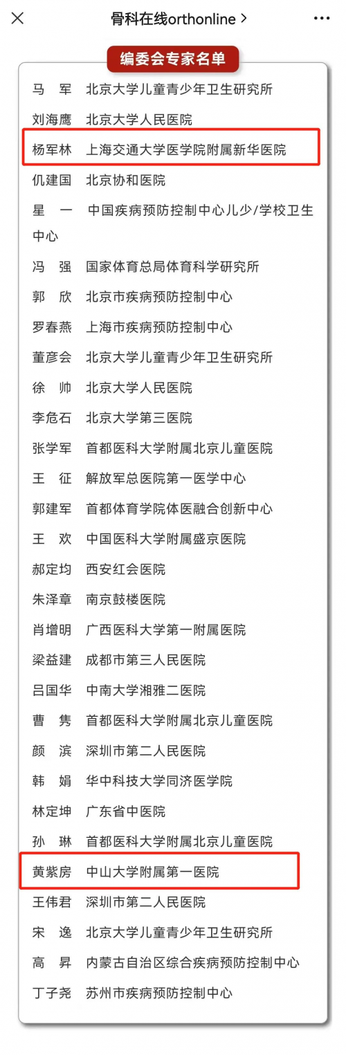 楊軍林教授作為新苗脊柱側(cè)彎首席醫(yī)學(xué)專家、中國醫(yī)師協(xié)會骨科分會小兒脊柱學(xué)組組長、中華預(yù)防醫(yī)學(xué)會脊柱疾病預(yù)防與控制專業(yè)委員會成員,黃紫房醫(yī)生作為新苗醫(yī)療團(tuán)隊特聘專家、中國醫(yī)師協(xié)會骨科分會小兒脊柱學(xué)組委員,深入?yún)⑴c到此次的《指南》編寫中。