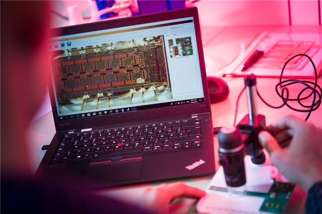 圖(三)用顯微鏡測(cè)試PCB上的ASIC