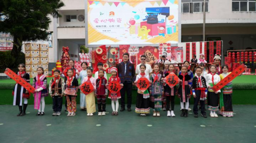 (愛生生命代表團與金平縣委常委、縣人民政府副縣長孫森代表慰問中國-赤道幾內(nèi)亞友誼小學(xué)并送上新年祝福。)