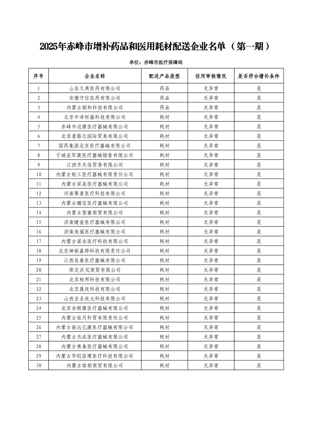 2025年赤峰市增補(bǔ)藥品和醫(yī)用耗材配送企業(yè)名單(第一期)
