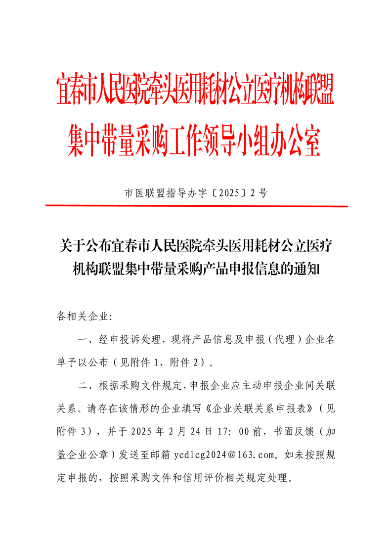 附件1:宜春市人民醫(yī)院牽頭醫(yī)用耗材公立醫(yī)療機(jī)構(gòu)聯(lián)盟集中帶量采購(gòu)產(chǎn)品申報(bào)信息公布表.xlsx
