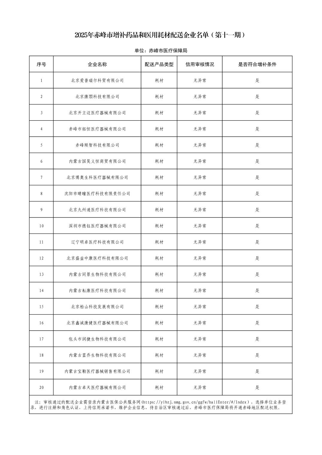 2025年赤峰市增補藥品和醫(yī)用耗材配送企業(yè)名單(第十一期)