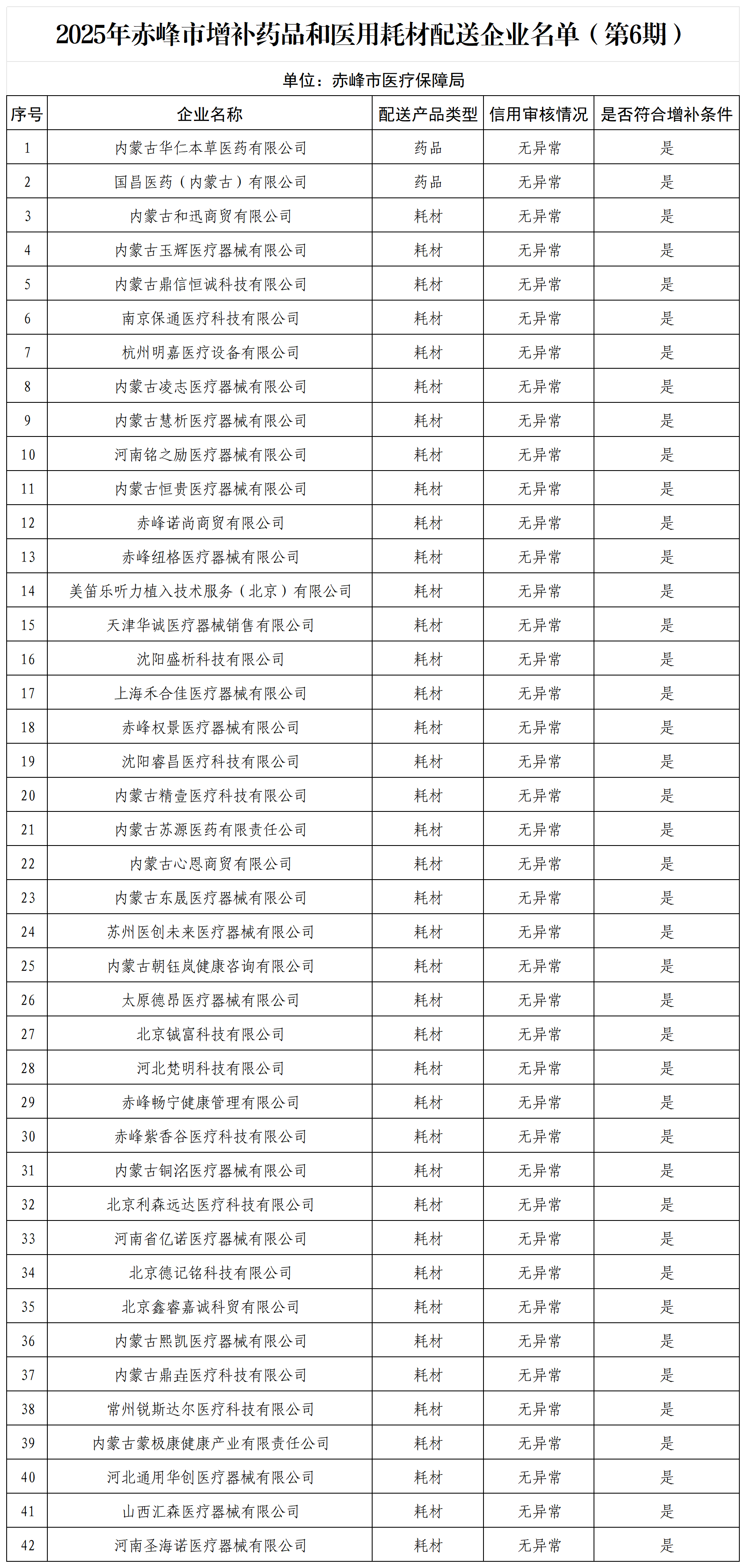 2025年赤峰市藥品和醫(yī)用耗材配送企業(yè)名單(第六期)