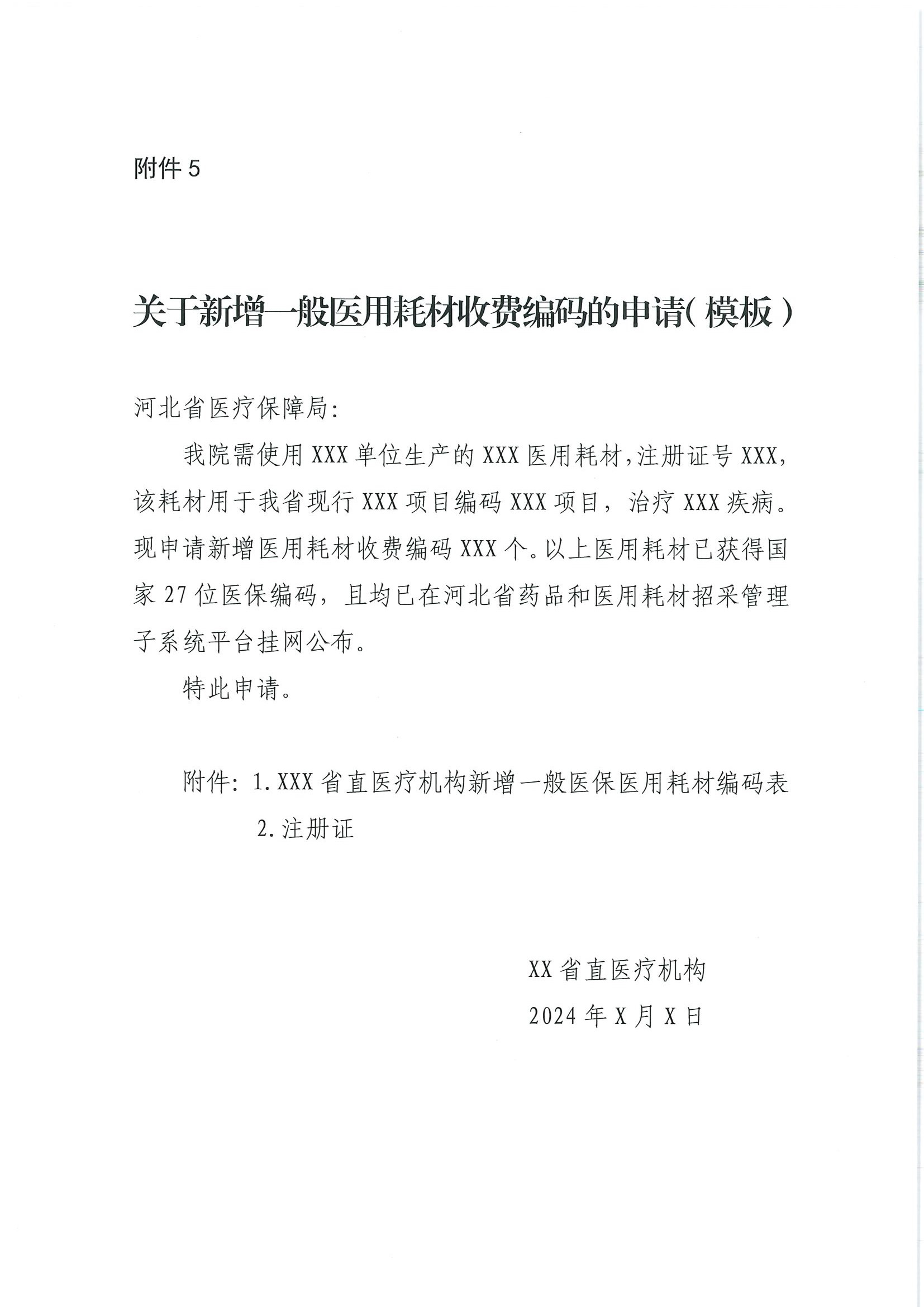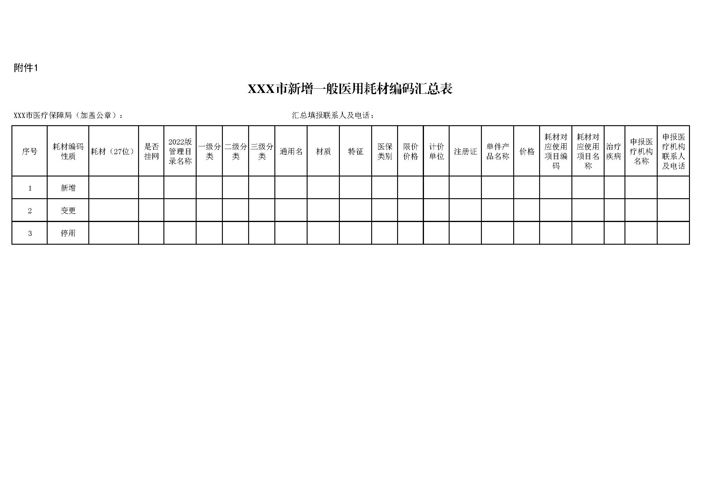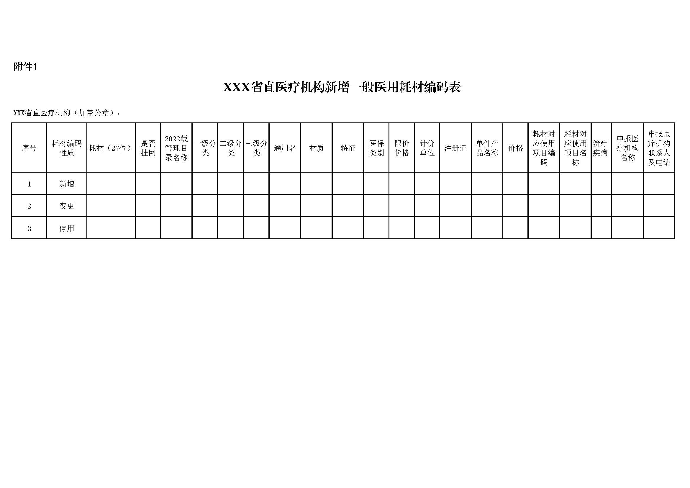第二步:醫(yī)用耗材掛網(wǎng)公布后,各定點醫(yī)療機構(gòu)向醫(yī)療保障部門申報新增、變更、停用醫(yī)用耗材編碼。其中,市級及以下醫(yī)療機構(gòu)向市醫(yī)保局醫(yī)藥價格和招標(biāo)采購科申報,市醫(yī)保局將申報情況核對匯總后統(tǒng)一報省醫(yī)保局(附件4);省直醫(yī)療機構(gòu)向省醫(yī)保局醫(yī)藥價格和招標(biāo)采購處申報(附件5)。