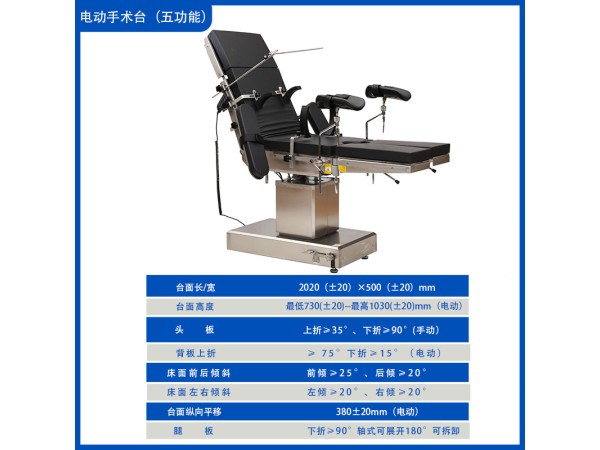 產(chǎn)品說明:電動綜合手術(shù)床供胸腹、外科、腦外科、眼科、耳鼻喉科、婦產(chǎn)科、泌尿科等實行綜合手術(shù)用。1、臺面板采用高強度并可透X光線的復(fù)合