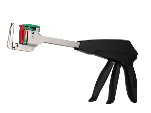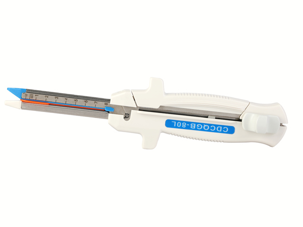 產(chǎn)品說(shuō)明:結(jié)構(gòu)及組成產(chǎn)品由吻合器和釘倉(cāng)組成。主要由釘砧把手、閉鎖突筍、釘砧叉、縫合釘保護(hù)帽、組織定位鈕、釘倉(cāng)調(diào)校槽、盒叉、肩、調(diào)校