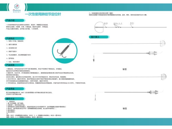 產(chǎn)品說(shuō)明:用于在電視胸腔鏡手術(shù)(VAST)前對(duì)肺周圍型小結(jié)節(jié)病灶部位進(jìn)行標(biāo)記定位,引導(dǎo)術(shù)中小結(jié)節(jié)病灶切除。適用科室:胸外科、呼吸科、腫