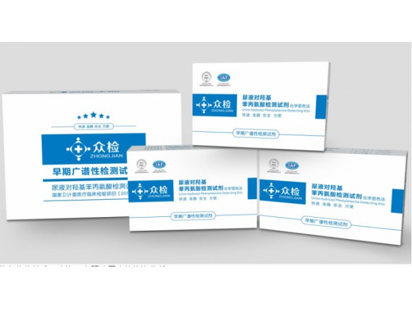 產品說明:眾檢;即醫(yī)學名稱:對羥基苯丙氨酸(酪氨酸)尿液檢測試劑,用戶只需3毫升尿液,3至5分鐘即可定性診斷是否患有重大代謝類疾病或癌