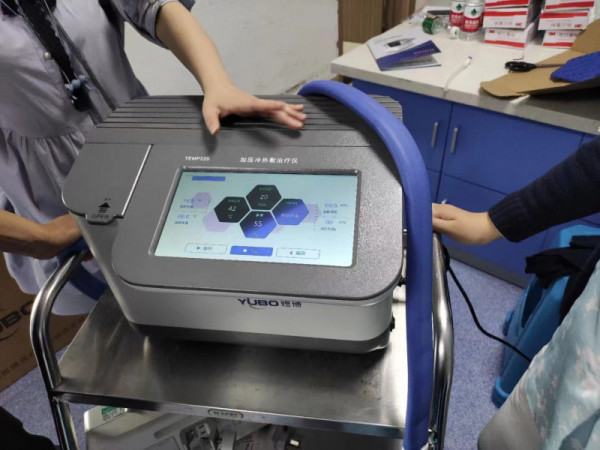 產(chǎn)品說明:煜博加壓冷熱敷治療儀型號(hào):TEMP550);脈動(dòng)加壓冷敷機(jī),由冷熱水發(fā)生器、水循環(huán)動(dòng)力裝置、溫度顯示與控制器,以及帶有循環(huán)水道的