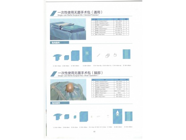 產(chǎn)品說明:1、規(guī)格、型號(hào):普通I型 、II型;介入I型、II型 2、本產(chǎn)品普通I型基本配置:剖腹單、一次性使用中單、一次性使用治療巾、一次性醫(yī)